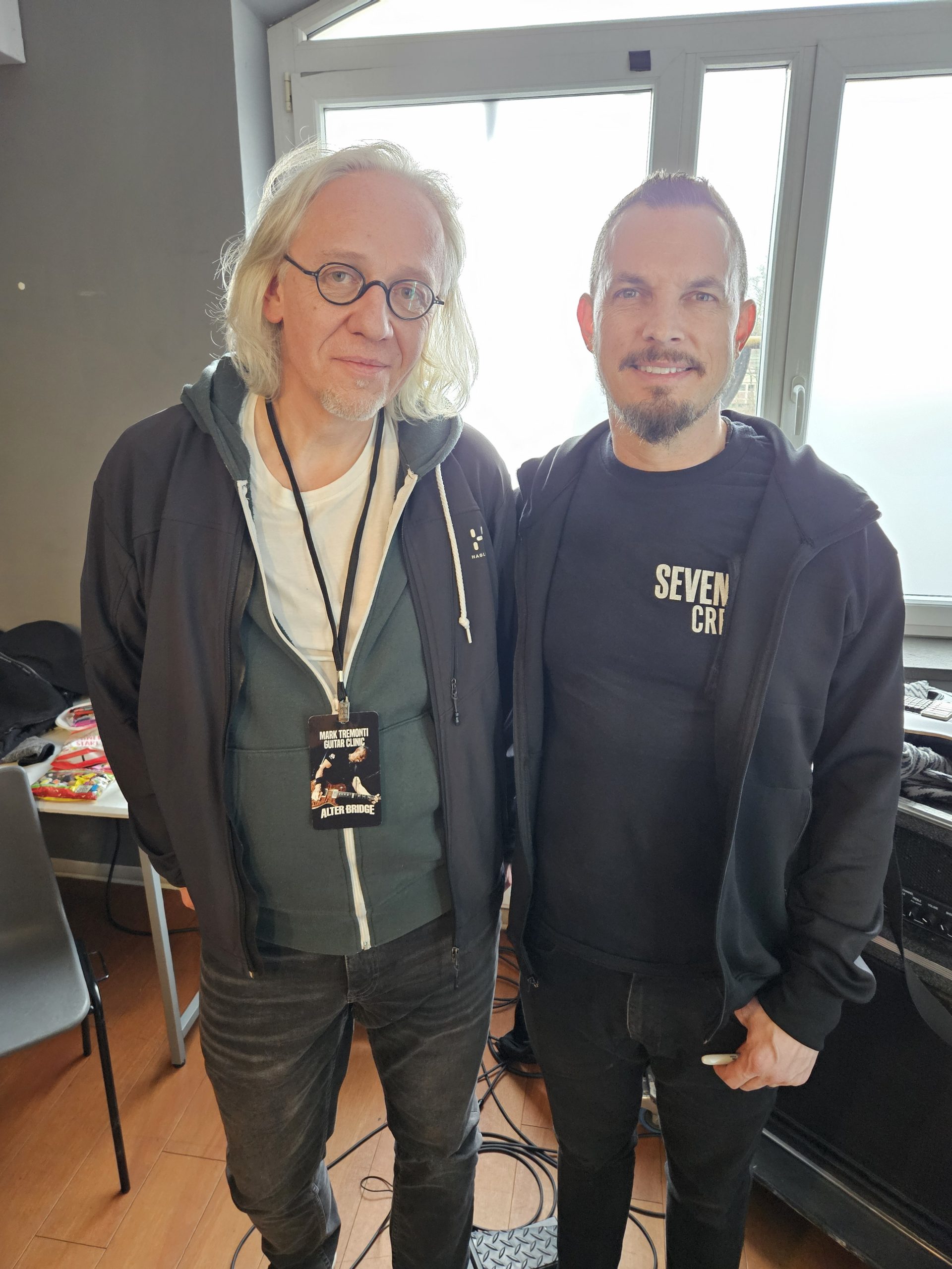 Leider war der Workshop viel zu kurz. Aber jedem, dem sich die Gelegenheit bietet und der an moderner Rock-Gitarre interessiert ist, sollte durchaus mal einen Nachmittag mit Mark Tremonti Gitarre spielen … Ich habe tatsächlich einige gute neue Ideen mitgenommen. 😉